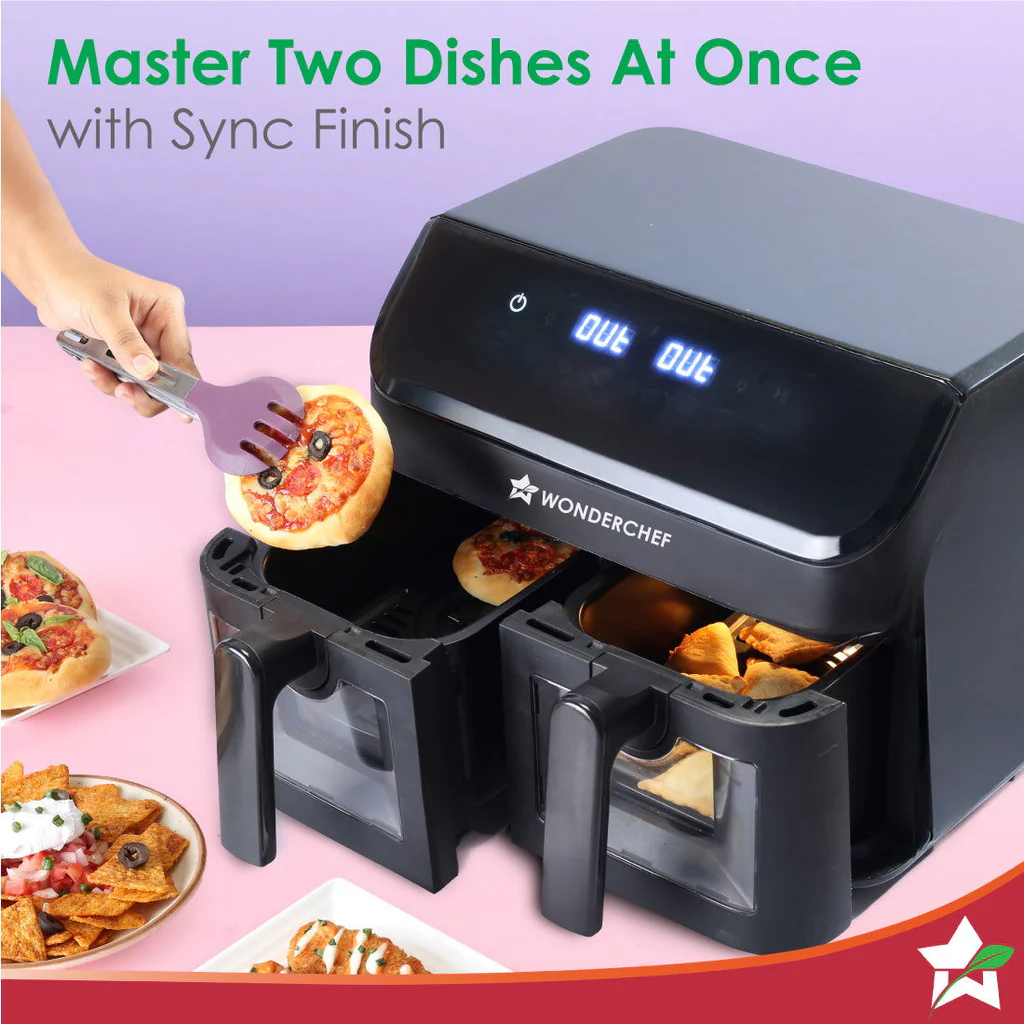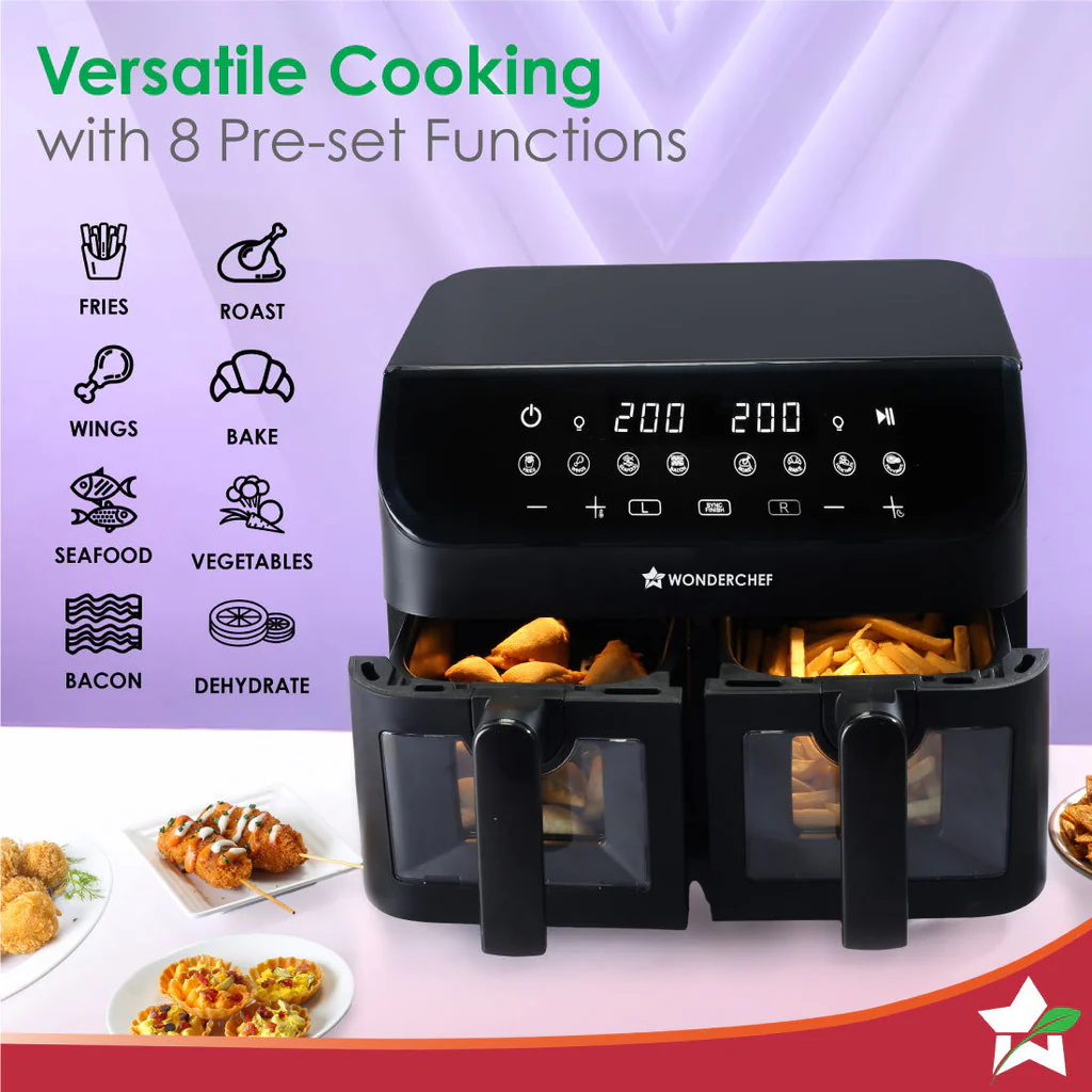 Regenta Digital Air Fryer with Dual Basket | 2000W, 9L | 2 Baskets for Different Types of Cooking | Healthy Food with Minimum Oil | Auto Resume & Shut-off | Touch Screen | 2 Year Warranty