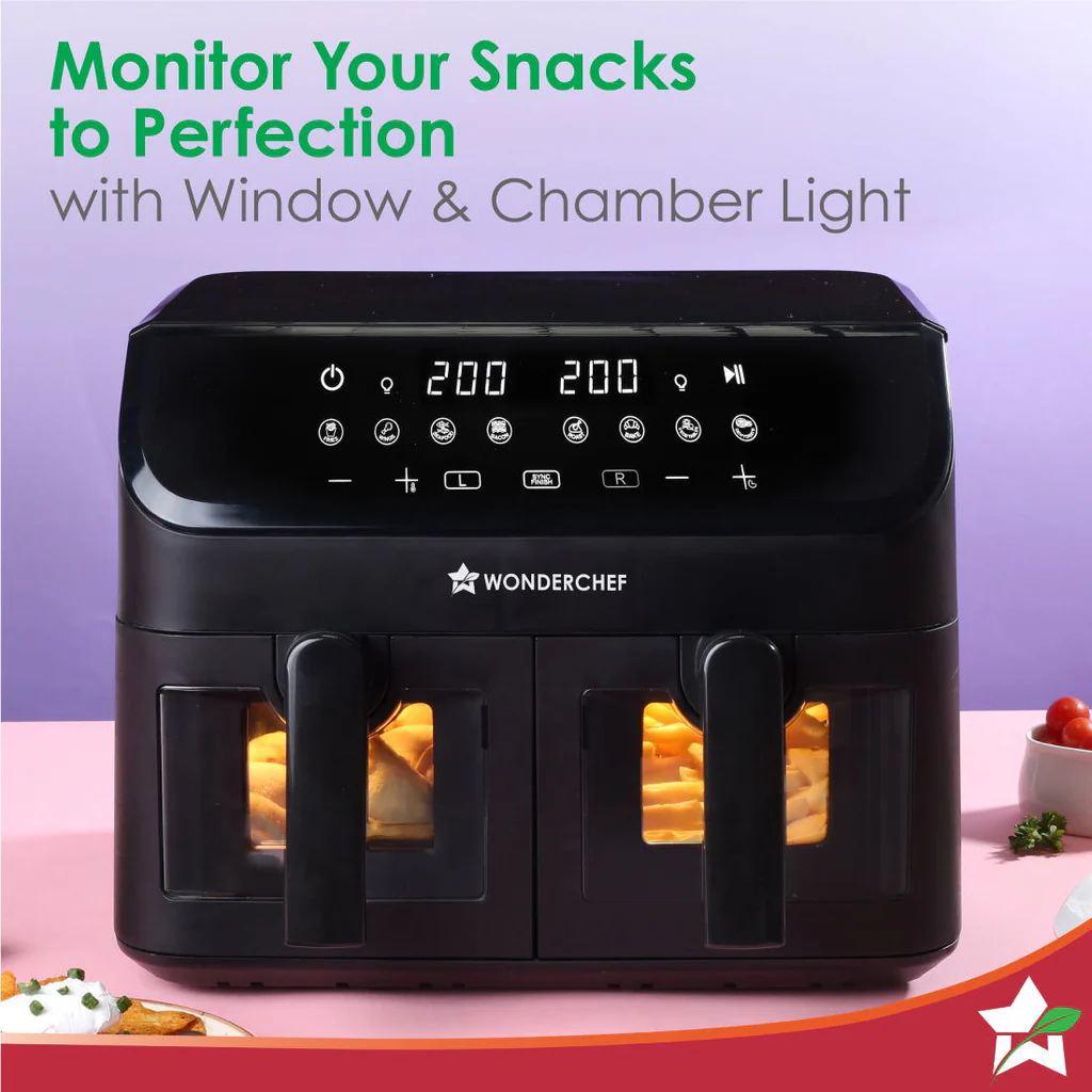 - Monitor Your Food: The air fryer features window and interior lights in both baskets, helping you to monitor your pakoras and paneer tikkas! Track your cooking without opening the basket.